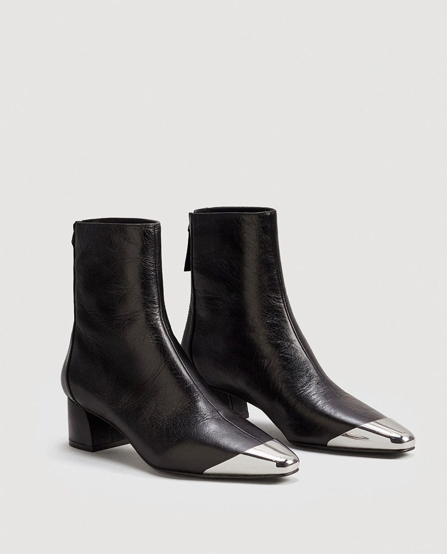 Metallic pointed toe leatherboots